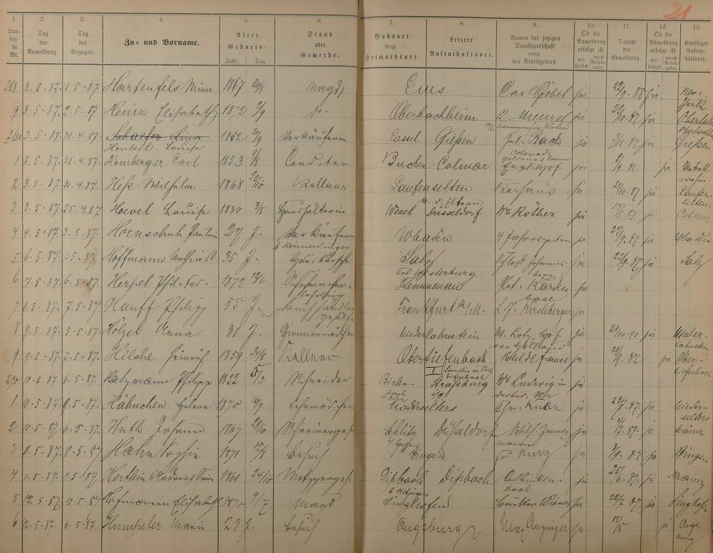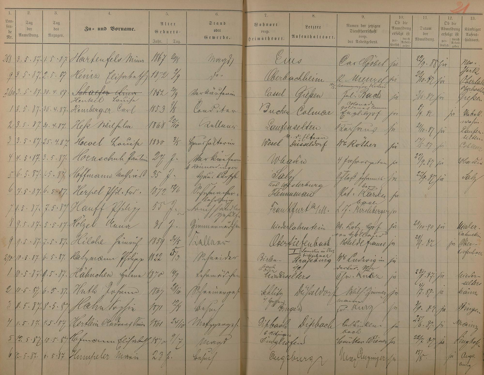 Melderegister der Gewerbegehilfen, Gesellen und Dienstboten 1886 - 1889