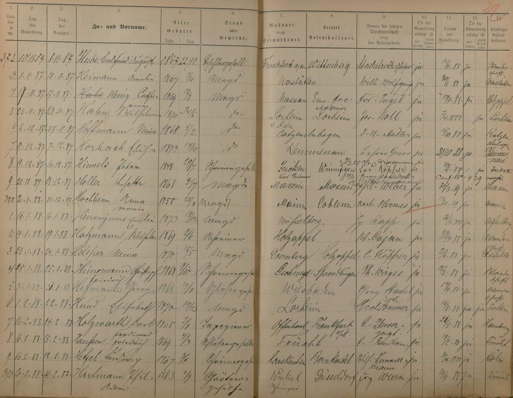 Melderegister der Gewerbegehilfen, Gesellen und Dienstboten 1886 - 1889