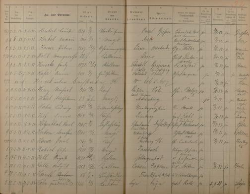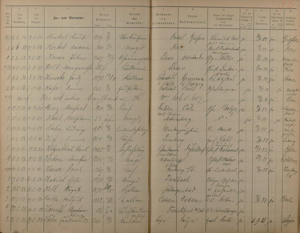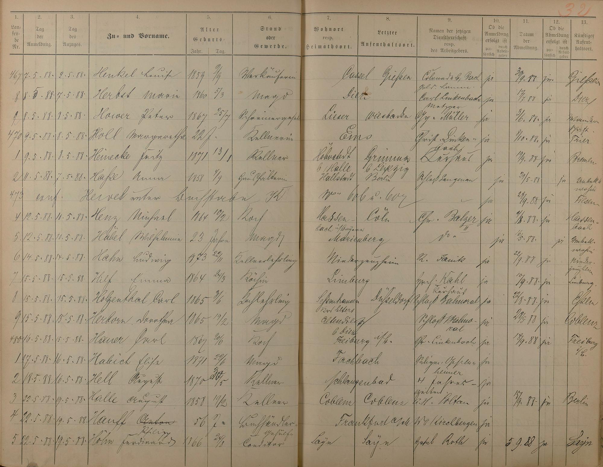 Melderegister der Gewerbegehilfen, Gesellen und Dienstboten 1886 - 1889