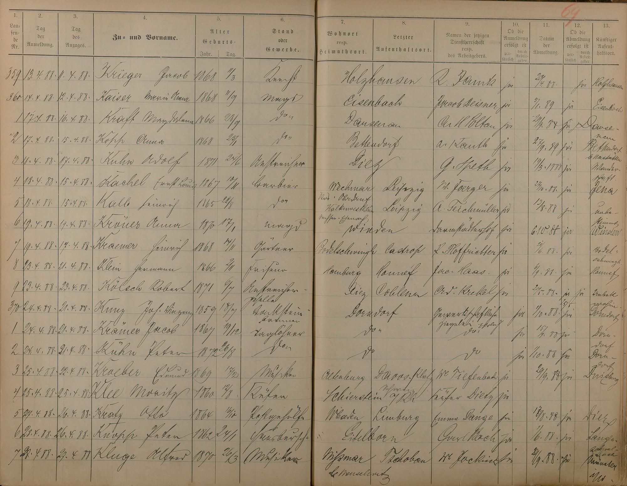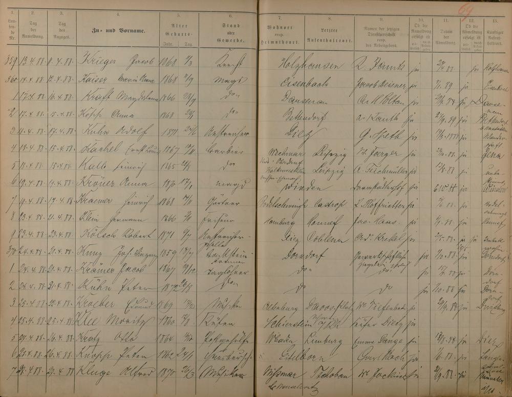 Melderegister der Gewerbegehilfen, Gesellen und Dienstboten 1886 - 1889