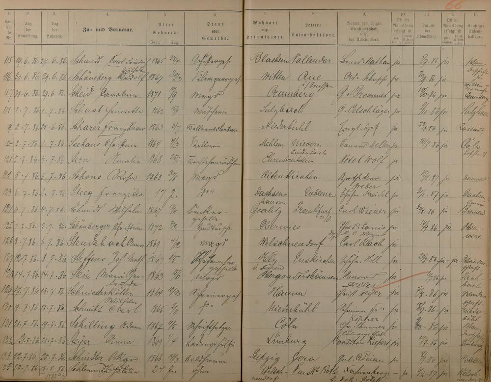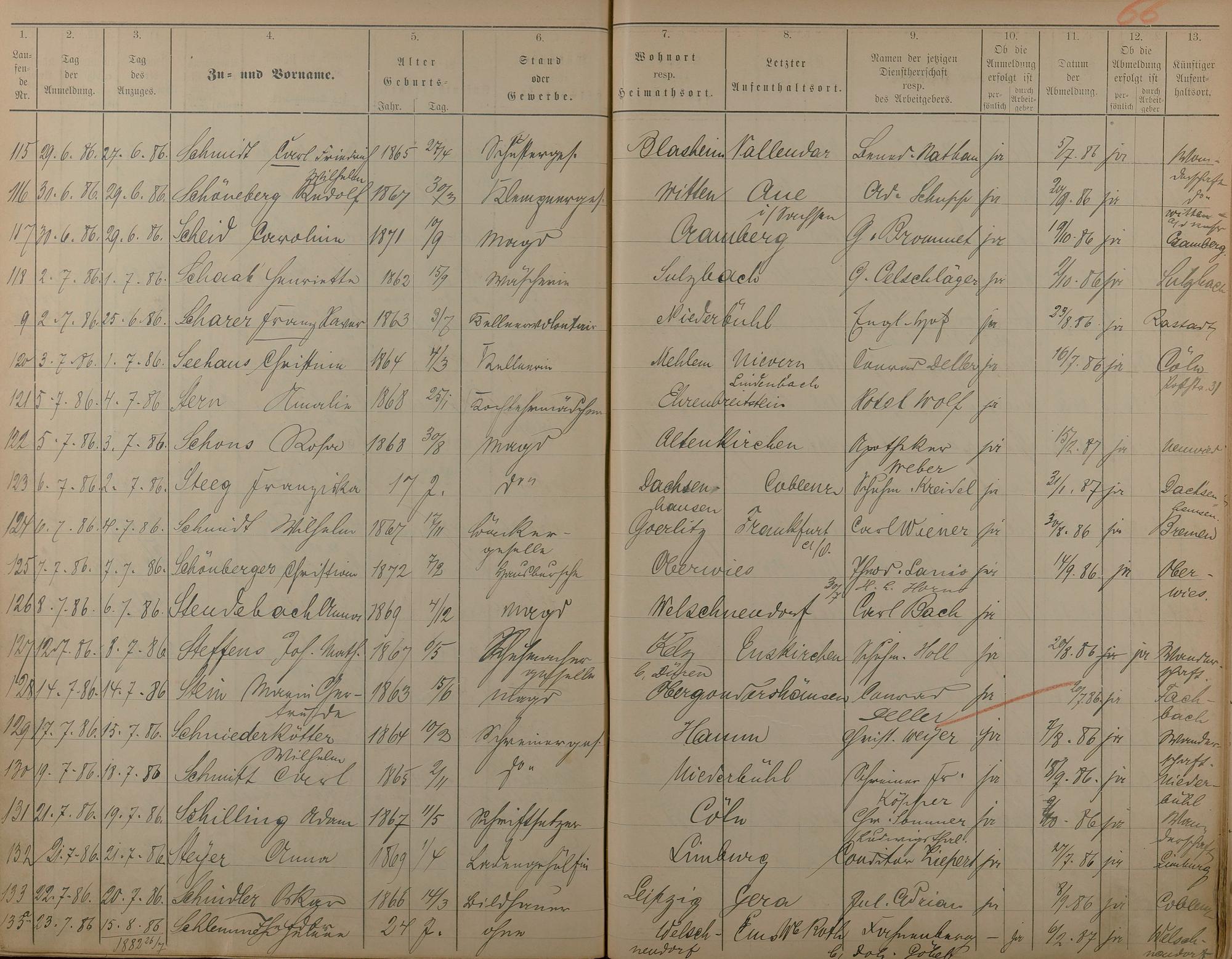 178: Melderegister der Gewerbegehilfen, Gesellen und Dienstboten 1886 - 1889