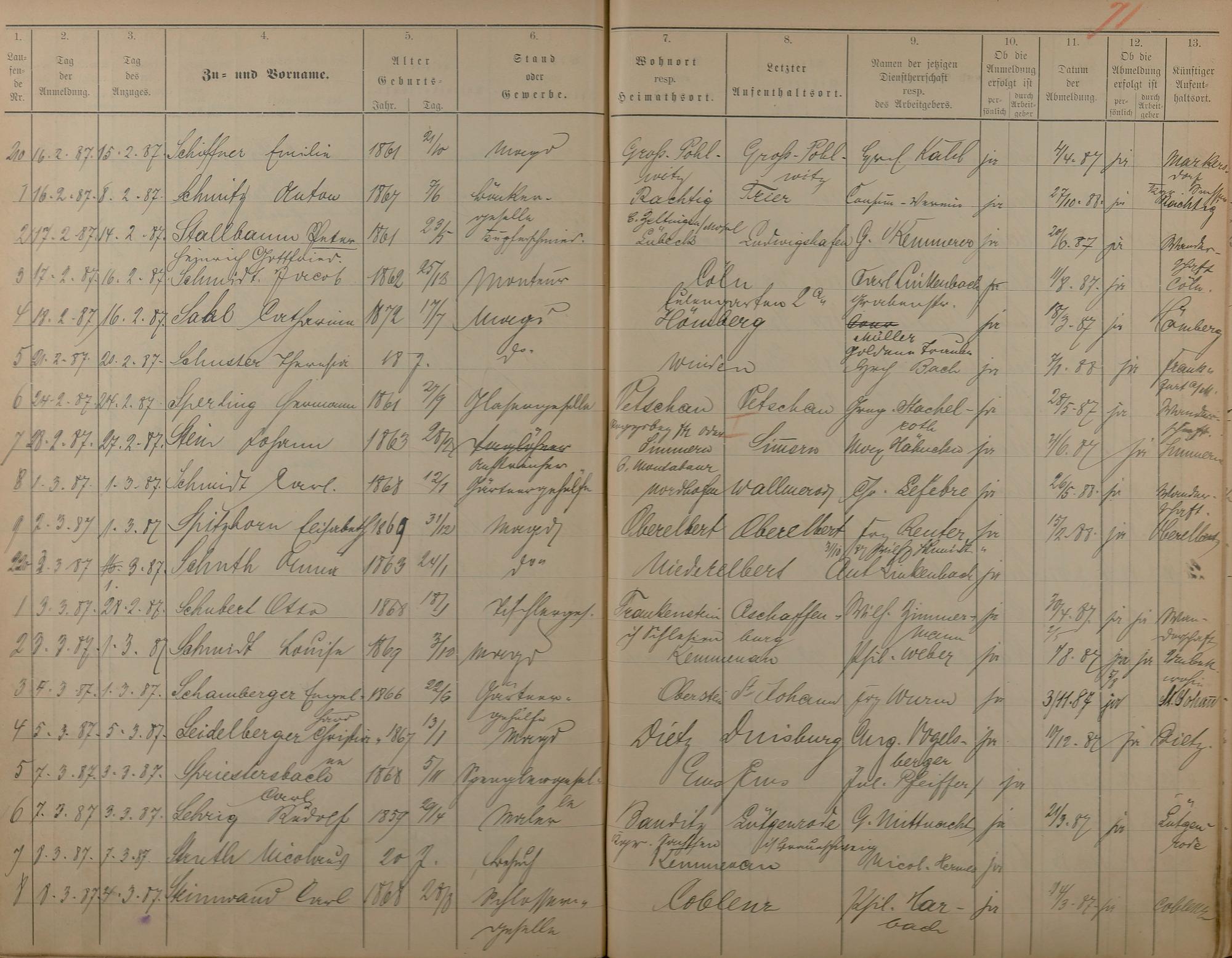 Melderegister der Gewerbegehilfen, Gesellen und Dienstboten 1886 - 1889