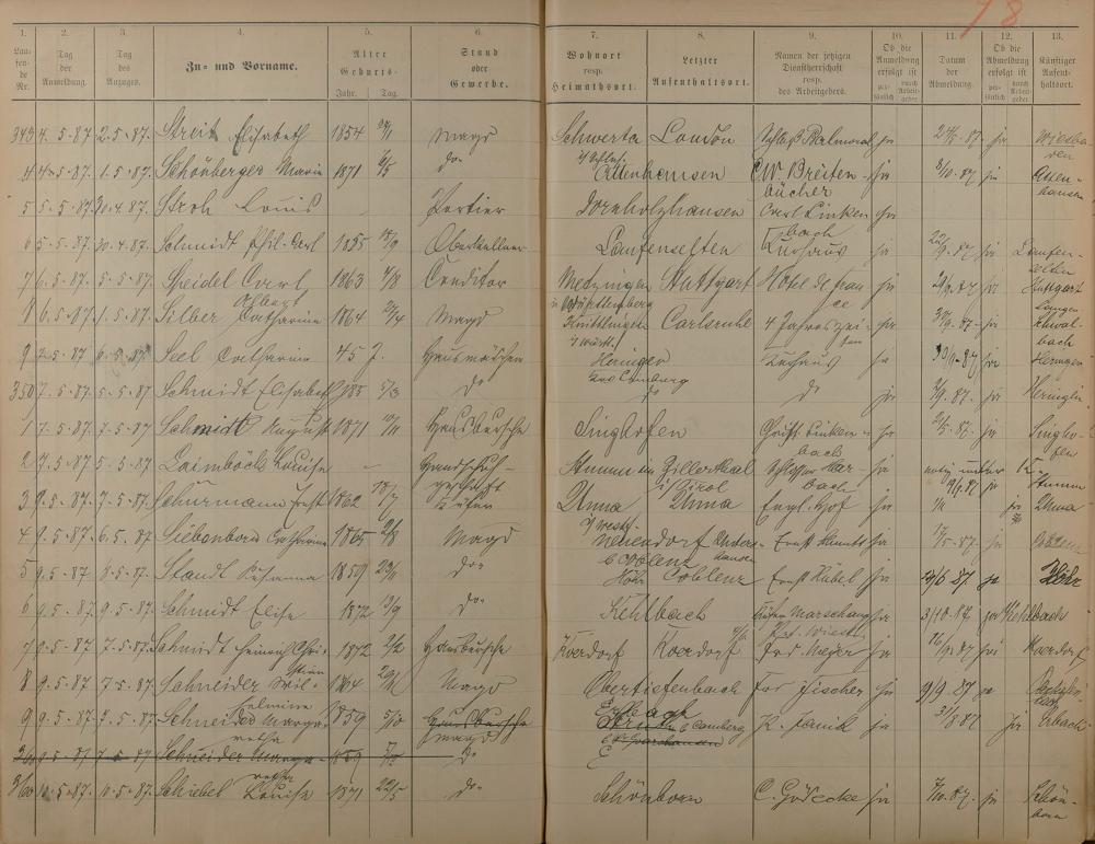178: Melderegister der Gewerbegehilfen, Gesellen und Dienstboten 1886 - 1889