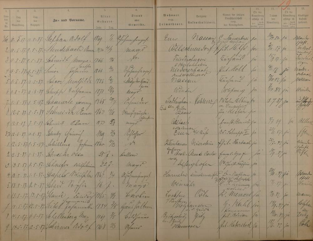 Melderegister der Gewerbegehilfen, Gesellen und Dienstboten 1886 - 1889