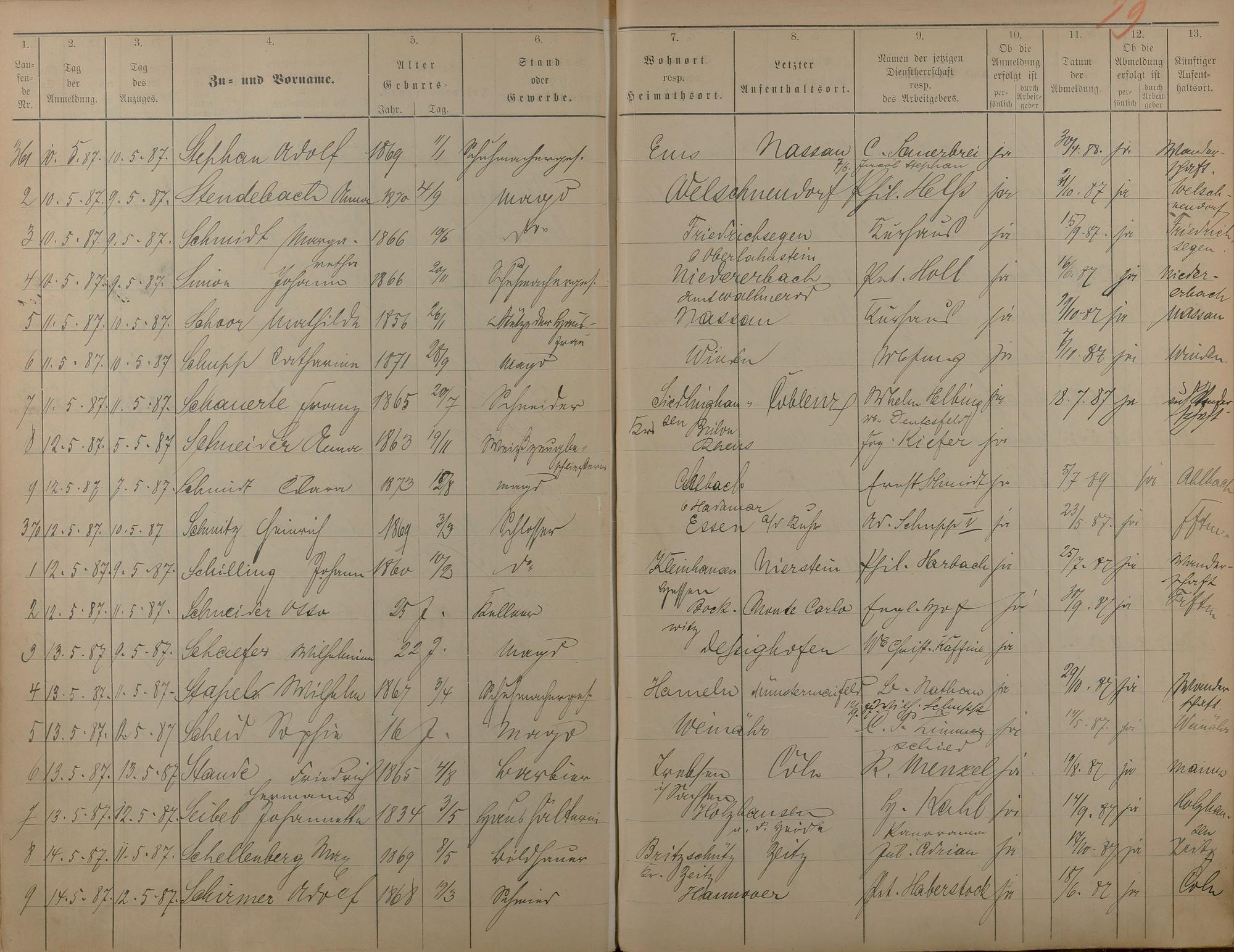 178: Melderegister der Gewerbegehilfen, Gesellen und Dienstboten 1886 - 1889