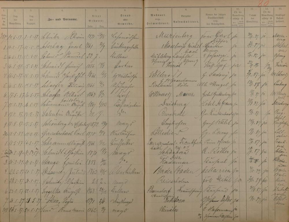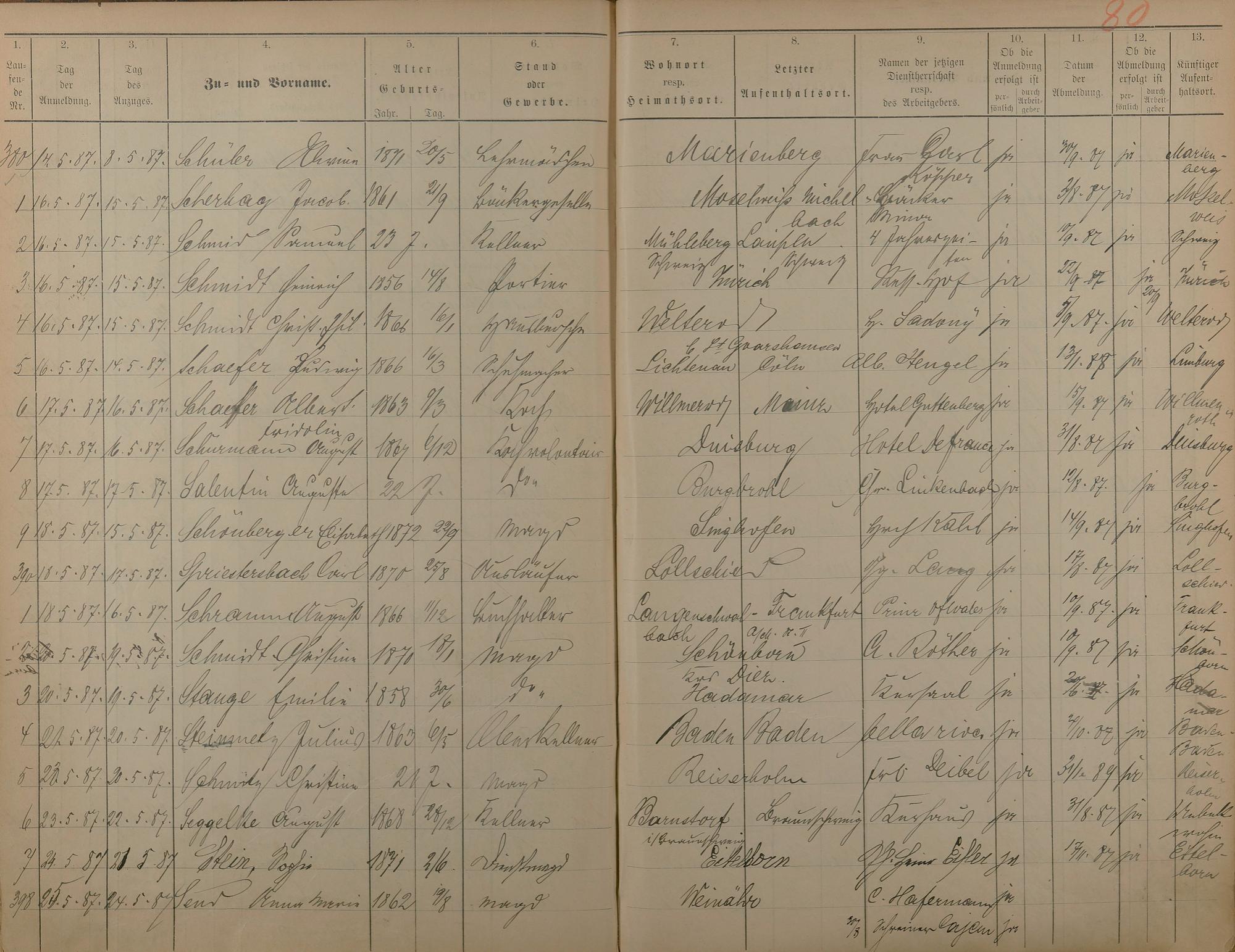 Melderegister der Gewerbegehilfen, Gesellen und Dienstboten 1886 - 1889