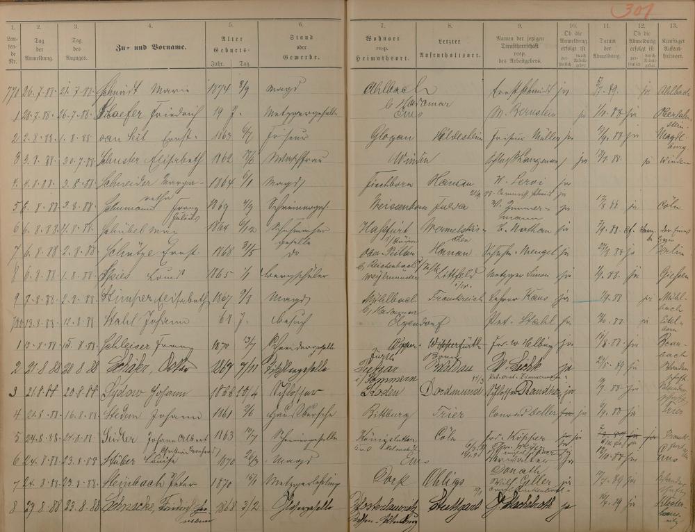 Melderegister der Gewerbegehilfen, Gesellen und Dienstboten 1886 - 1889