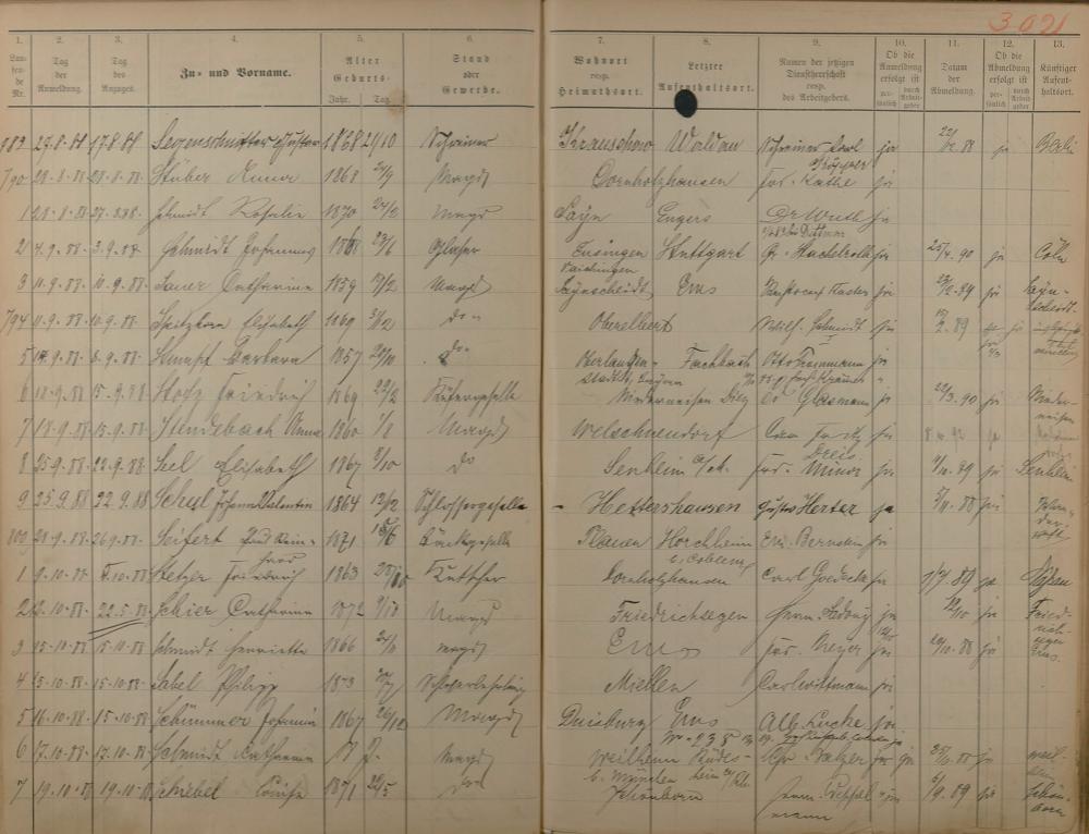 Melderegister der Gewerbegehilfen, Gesellen und Dienstboten 1886 - 1889