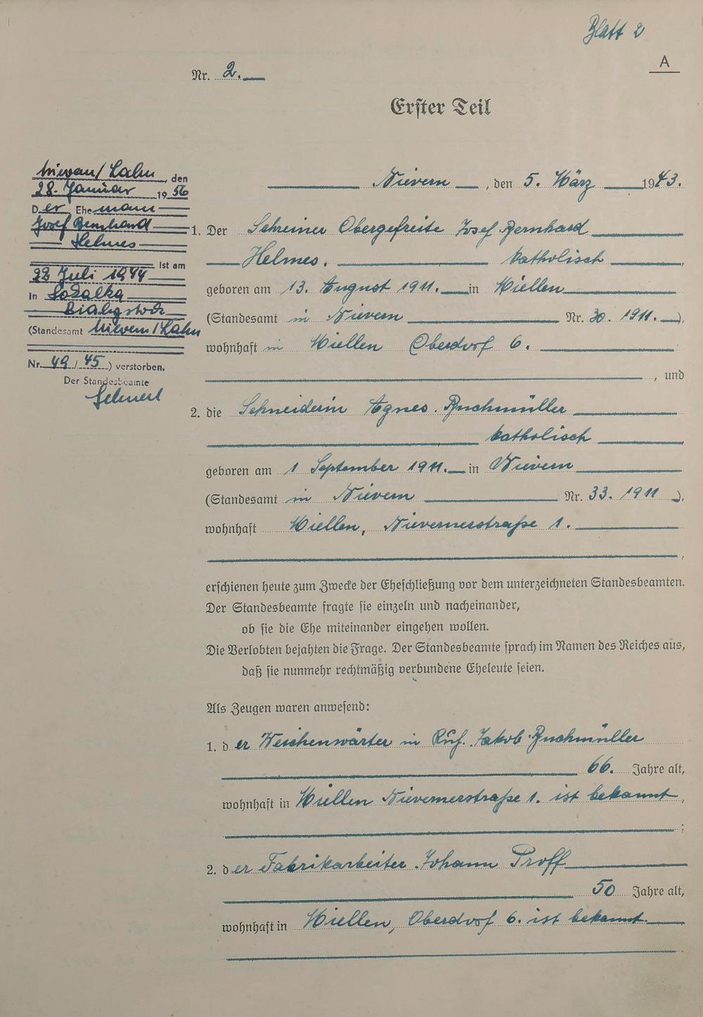Heiratsregister 1943