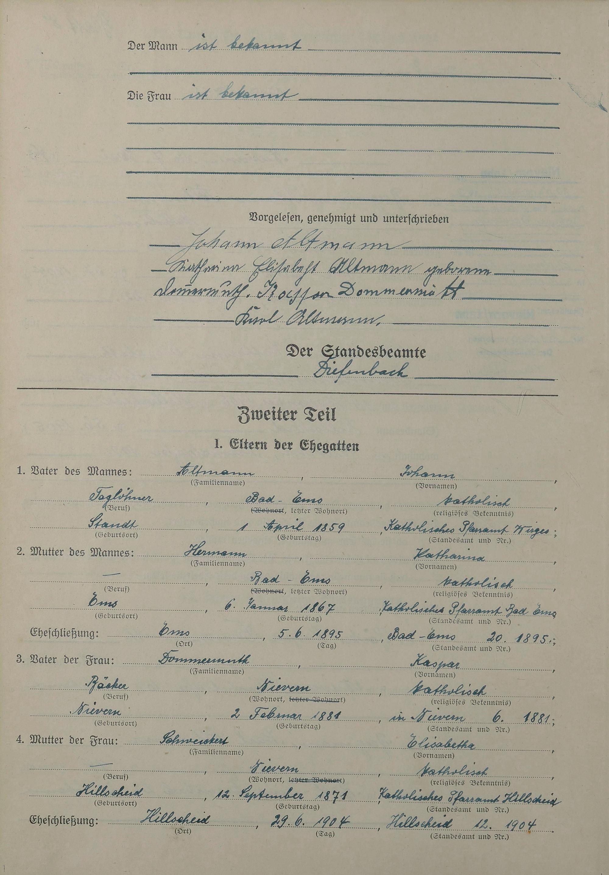 Heiratsregister 1943