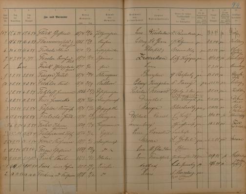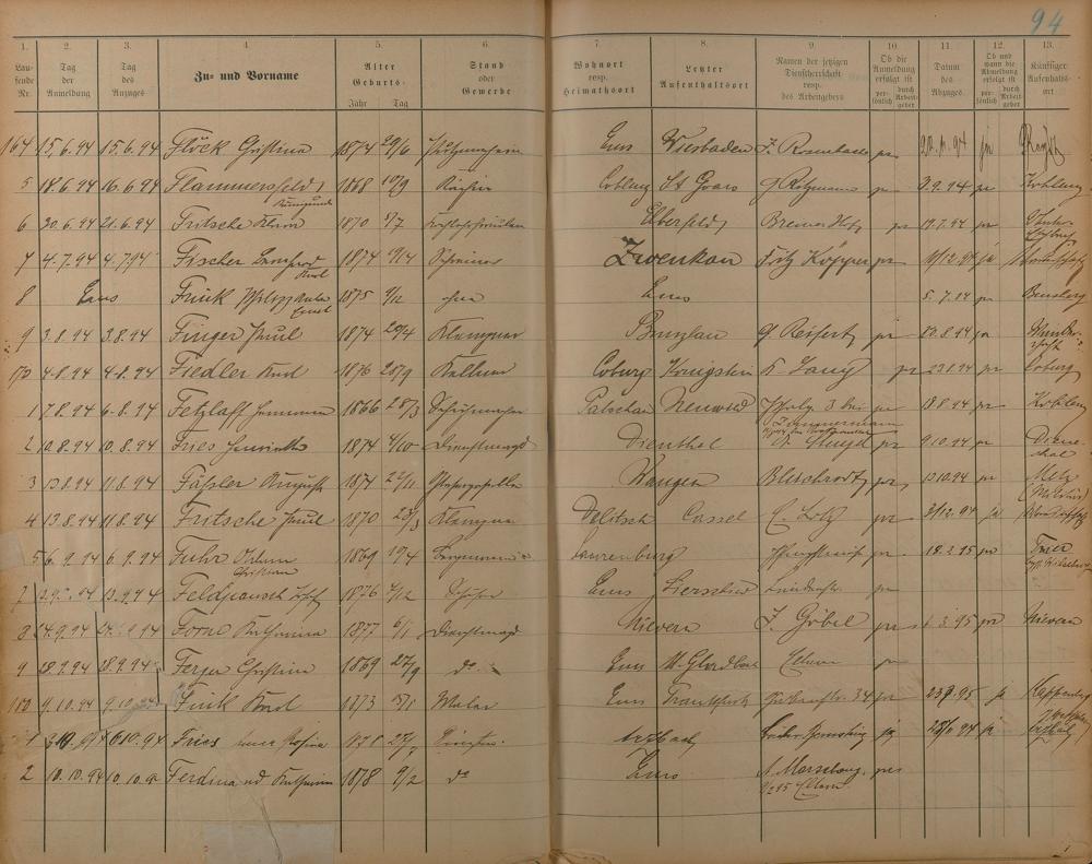 Melderegister der Gewerbegehilfen, Gesellen und Dienstboten 1892 - 1895