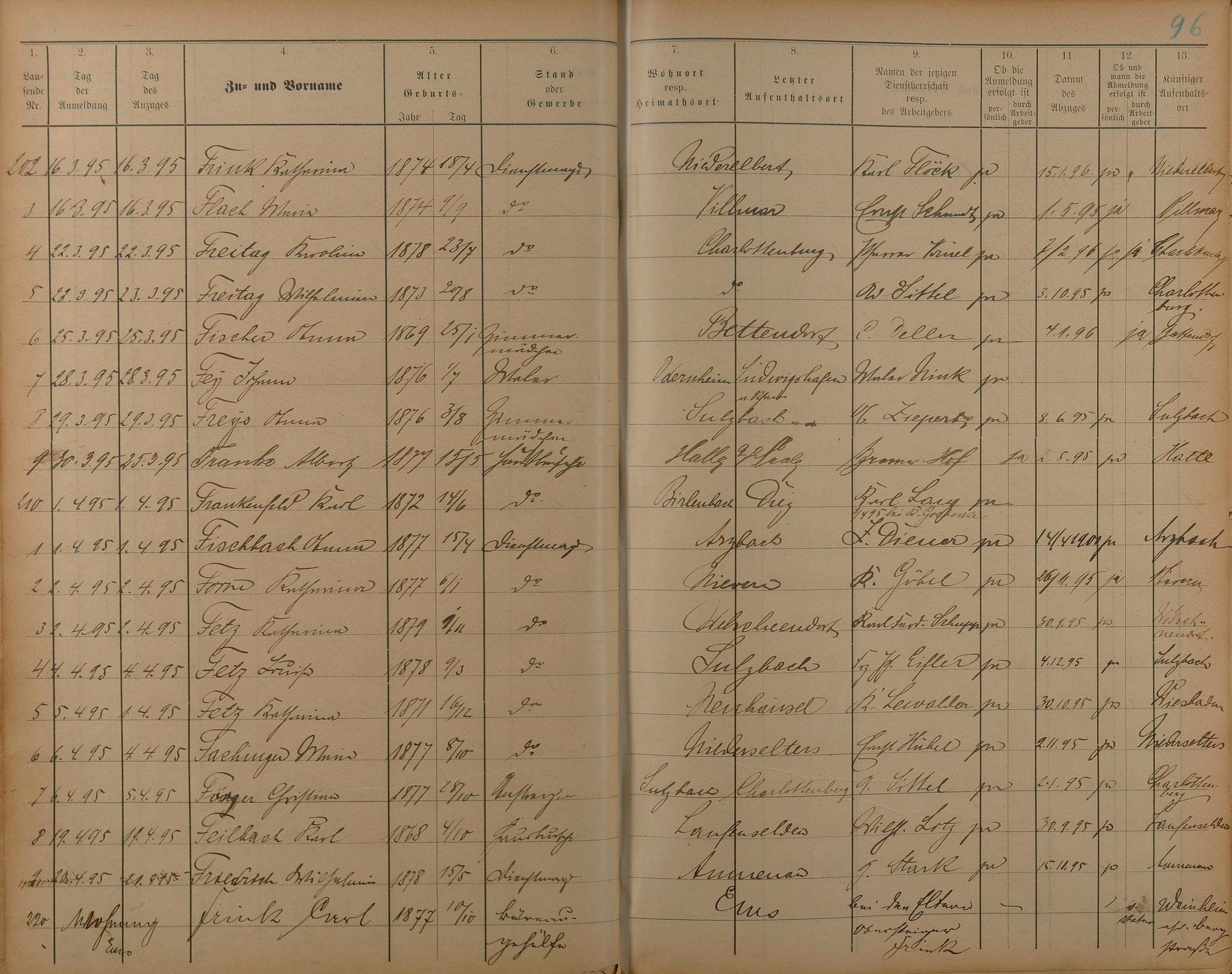 Melderegister der Gewerbegehilfen, Gesellen und Dienstboten 1892 - 1895