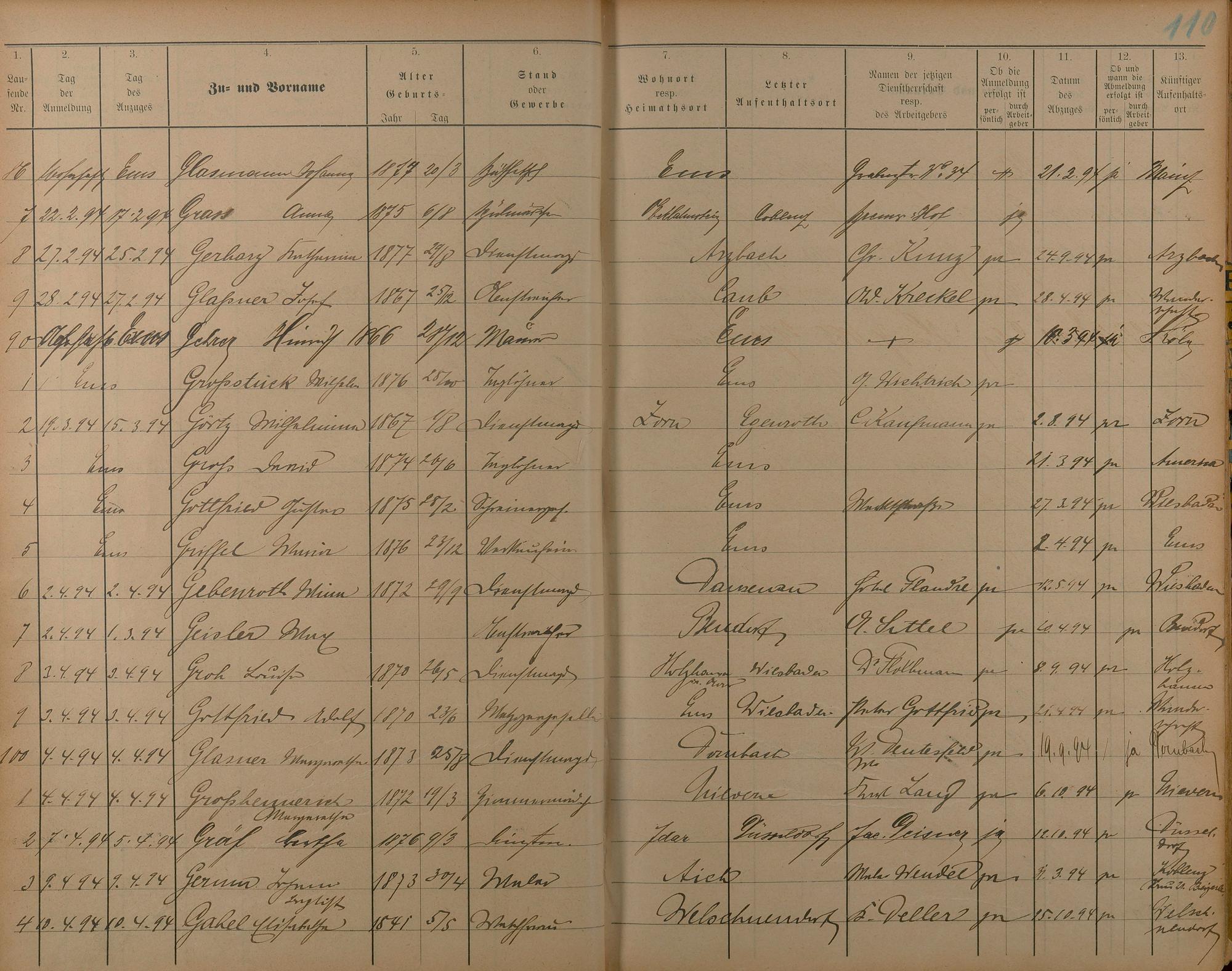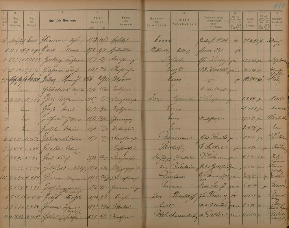 Melderegister der Gewerbegehilfen, Gesellen und Dienstboten 1892 - 1895