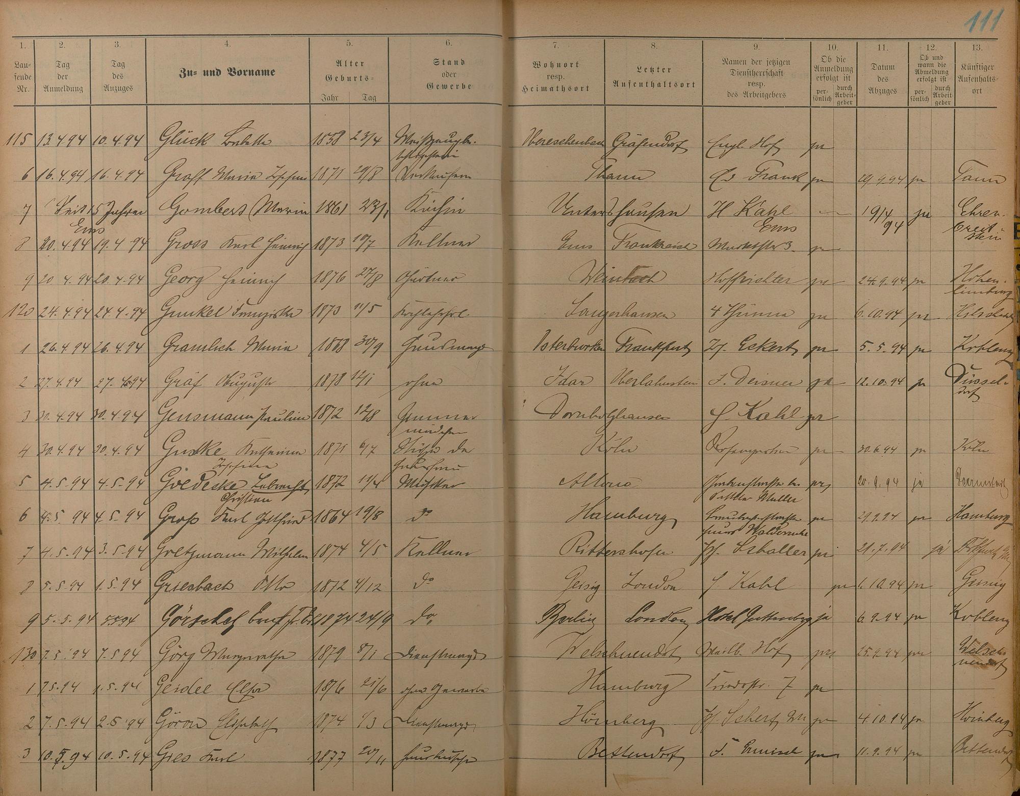 Melderegister der Gewerbegehilfen, Gesellen und Dienstboten 1892 - 1895