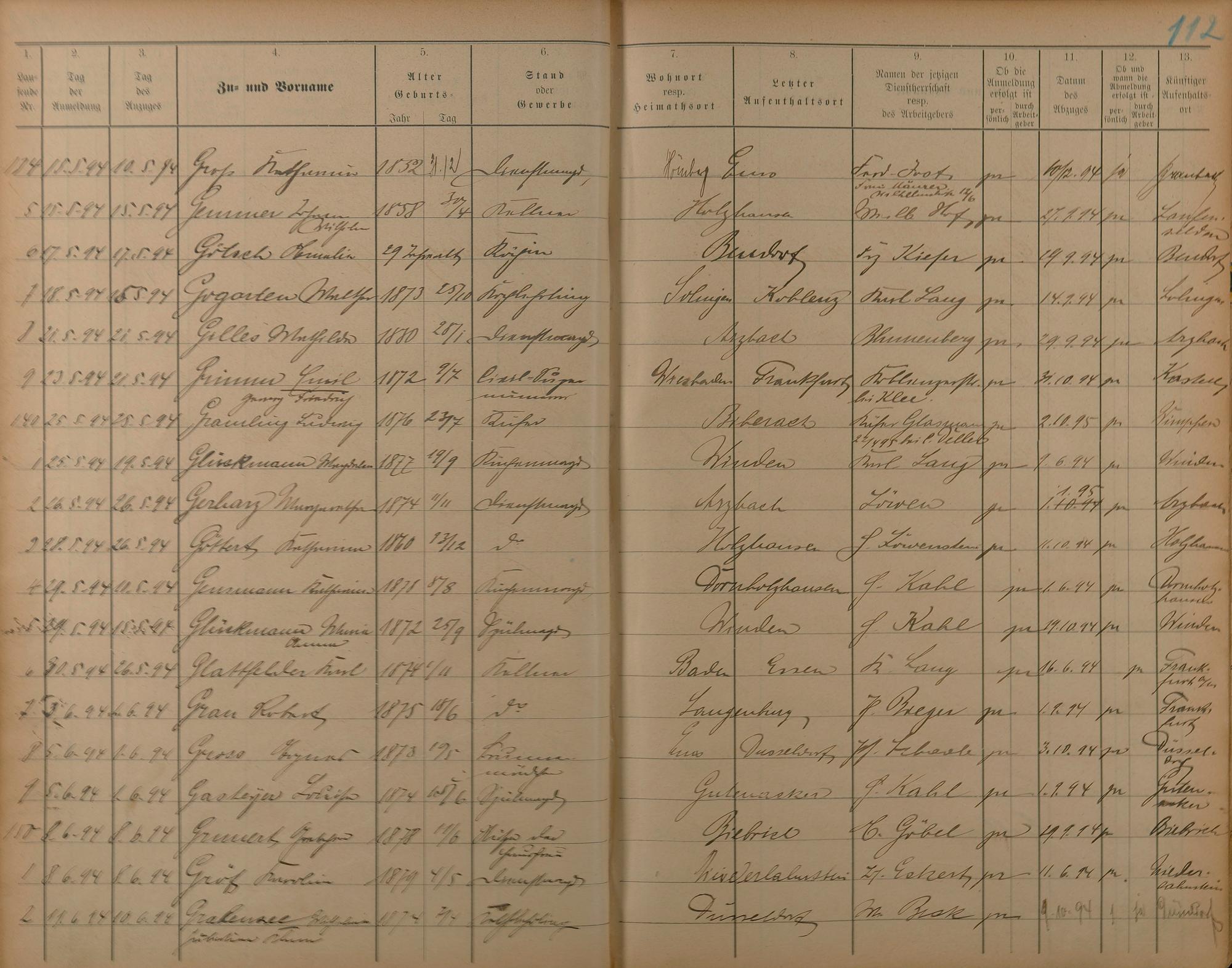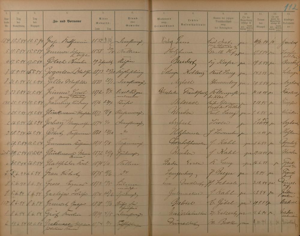 Melderegister der Gewerbegehilfen, Gesellen und Dienstboten 1892 - 1895