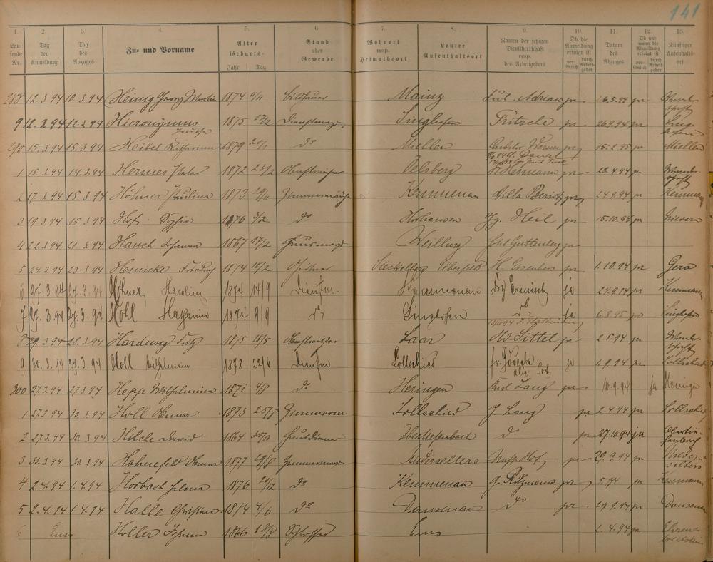 Melderegister der Gewerbegehilfen, Gesellen und Dienstboten 1892 - 1895