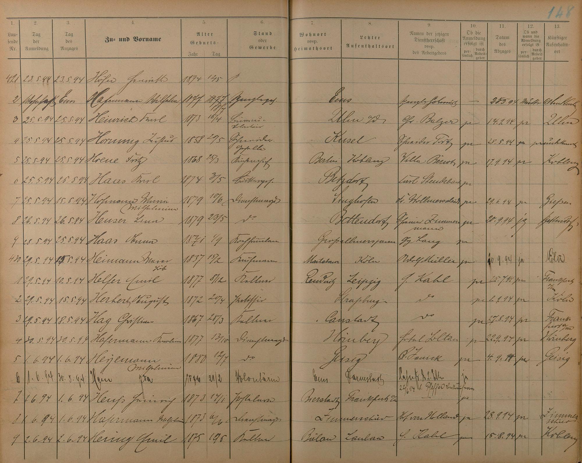 Melderegister der Gewerbegehilfen, Gesellen und Dienstboten 1892 - 1895