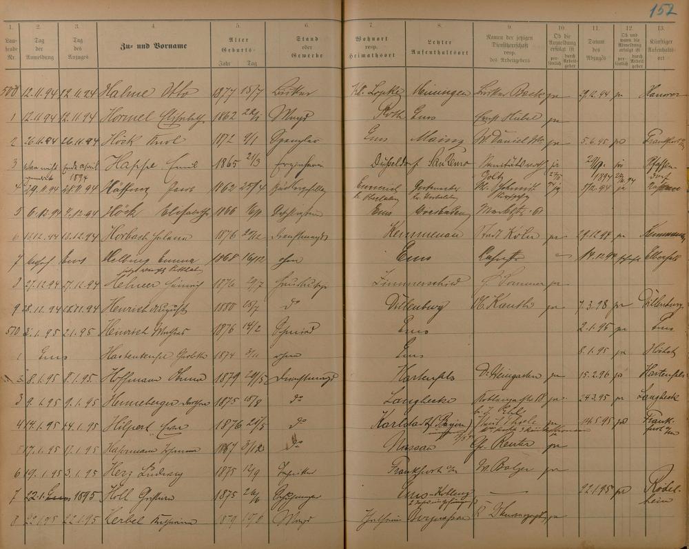 Melderegister der Gewerbegehilfen, Gesellen und Dienstboten 1892 - 1895
