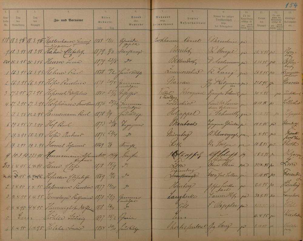 Melderegister der Gewerbegehilfen, Gesellen und Dienstboten 1892 - 1895