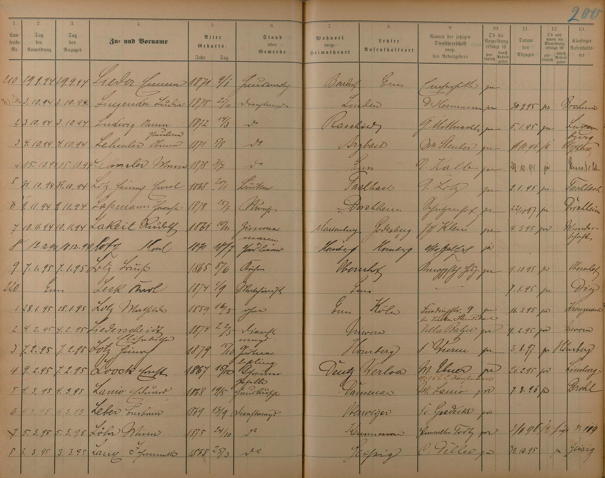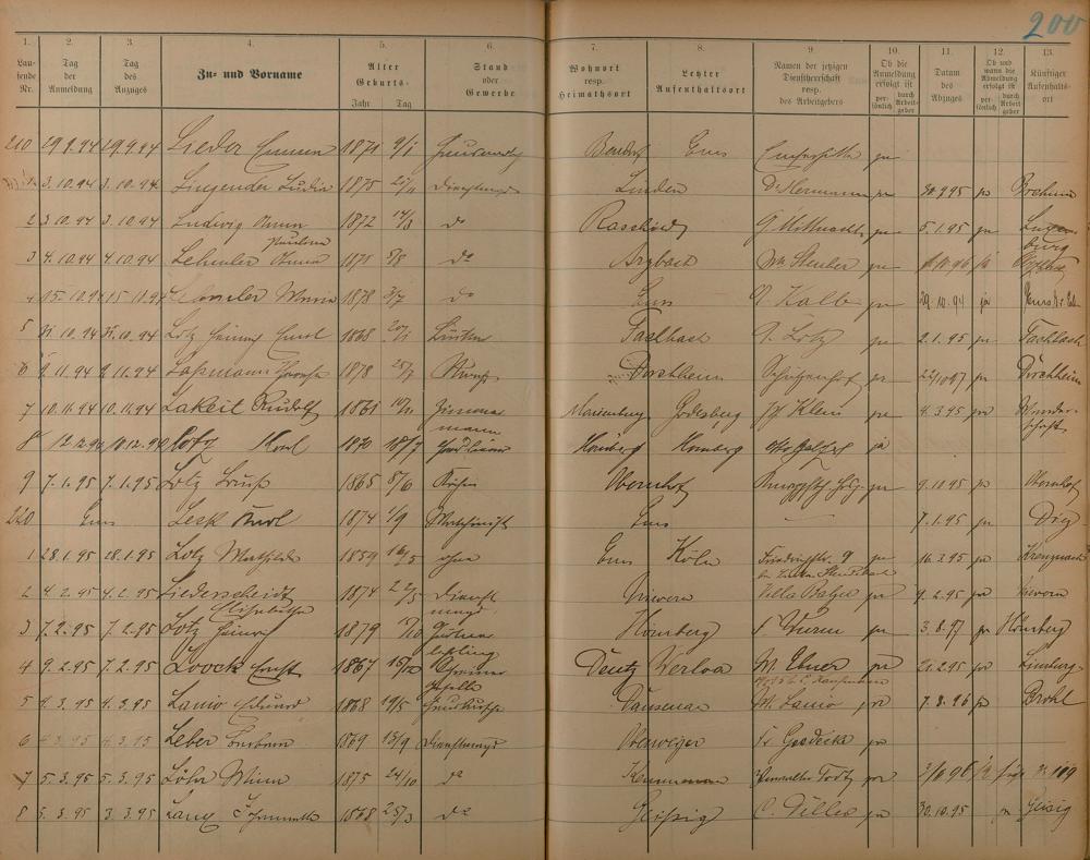 Melderegister der Gewerbegehilfen, Gesellen und Dienstboten 1892 - 1895