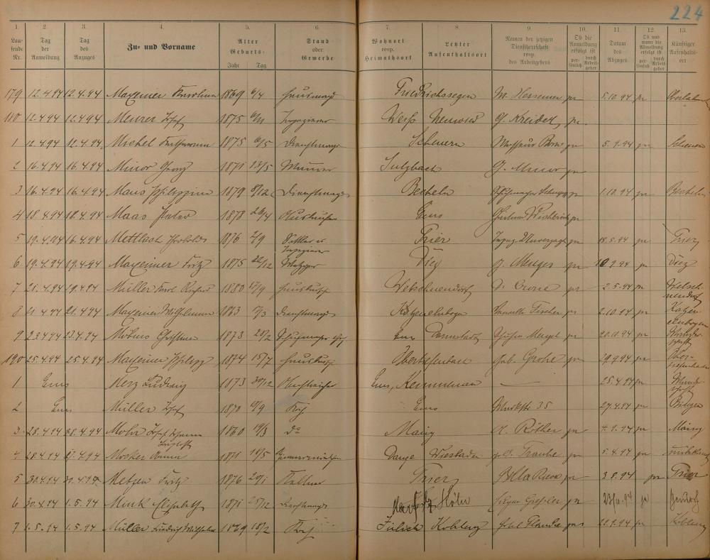 180: Melderegister der Gewerbegehilfen, Gesellen und Dienstboten 1892 - 1895