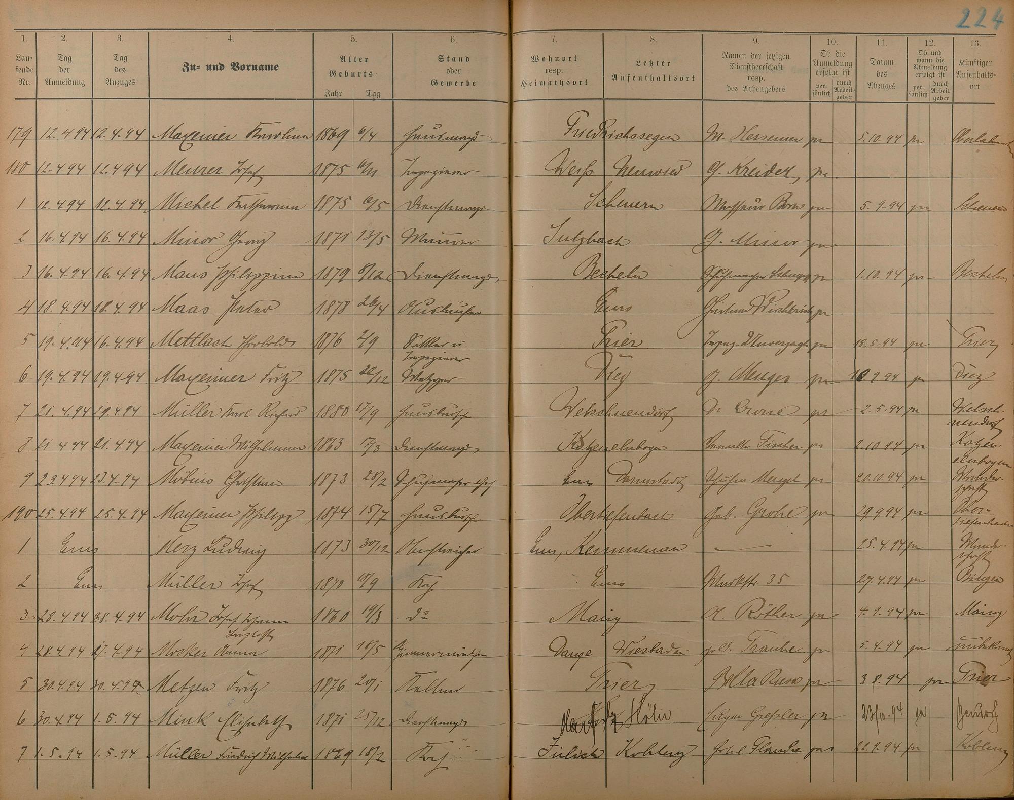 Melderegister der Gewerbegehilfen, Gesellen und Dienstboten 1892 - 1895