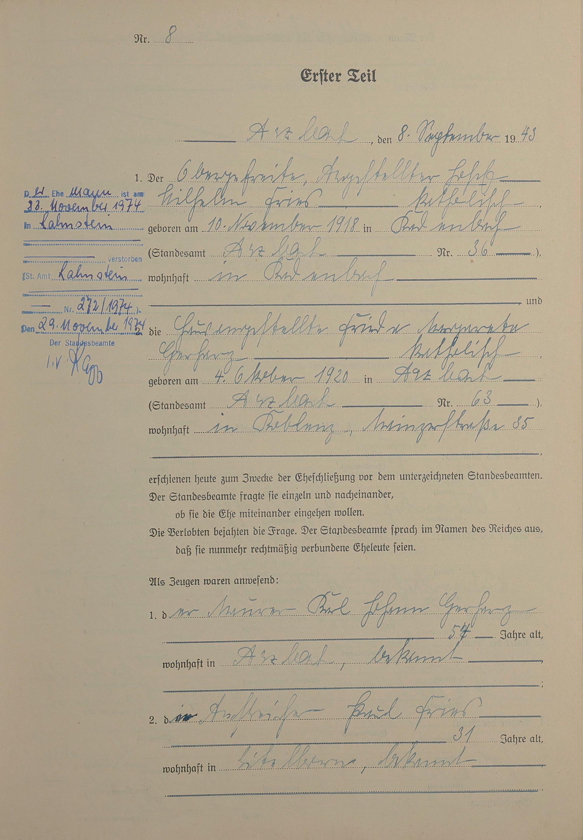 Heiratsregister 1943