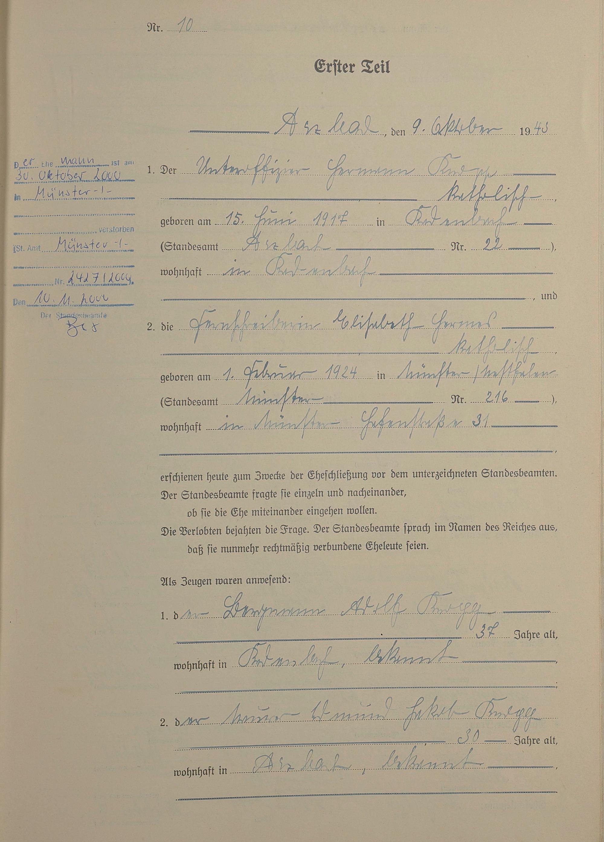 Heiratsregister 1943