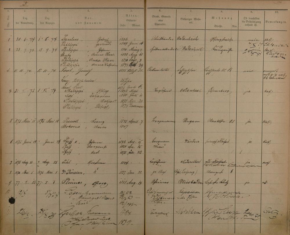 Melderegister 1873 - 1896