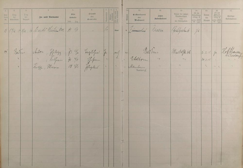 Melderegister 1909 - 1914