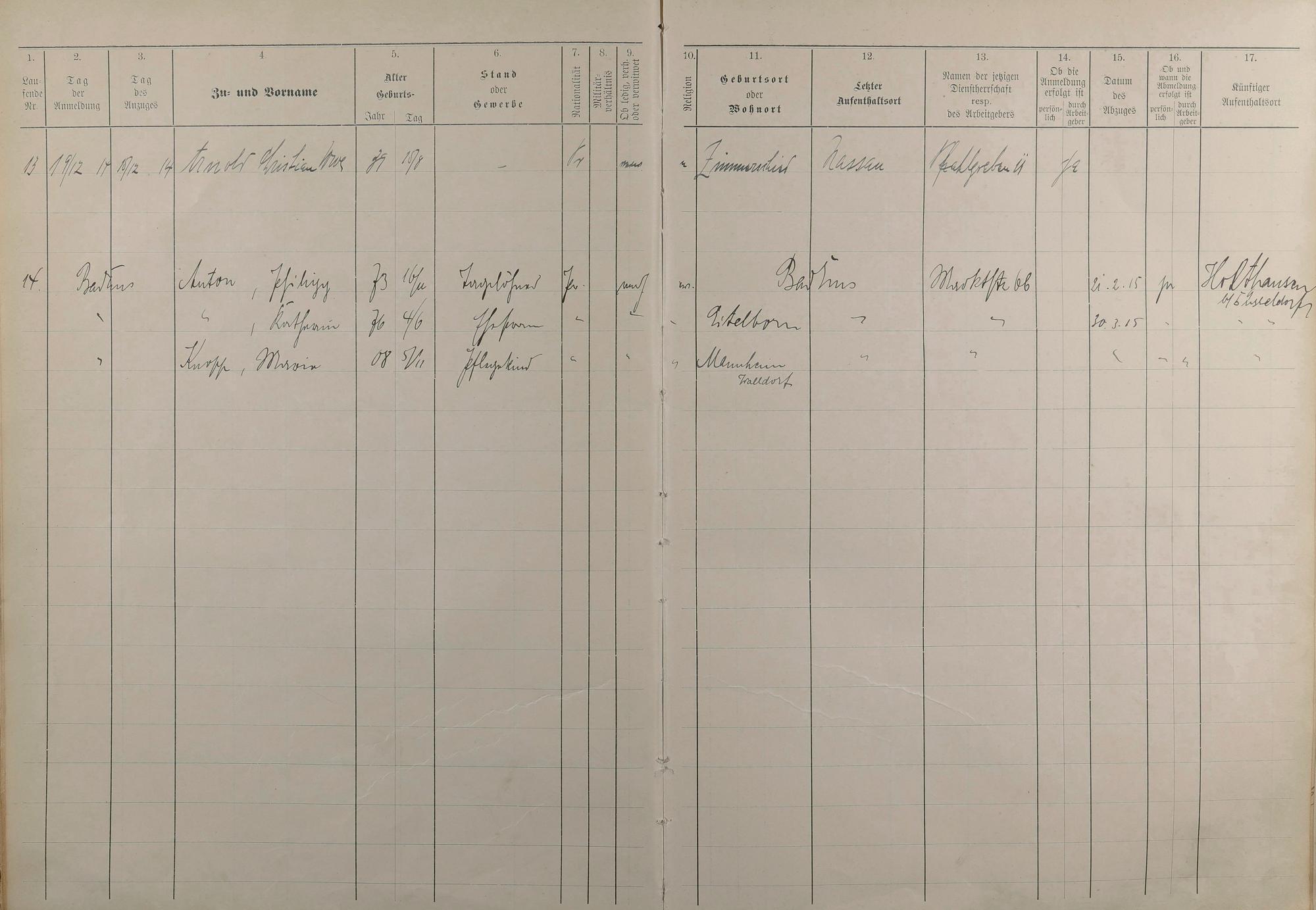 194: Melderegister 1909 - 1914