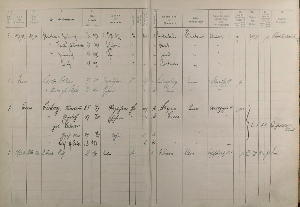 Melderegister 1909 - 1914