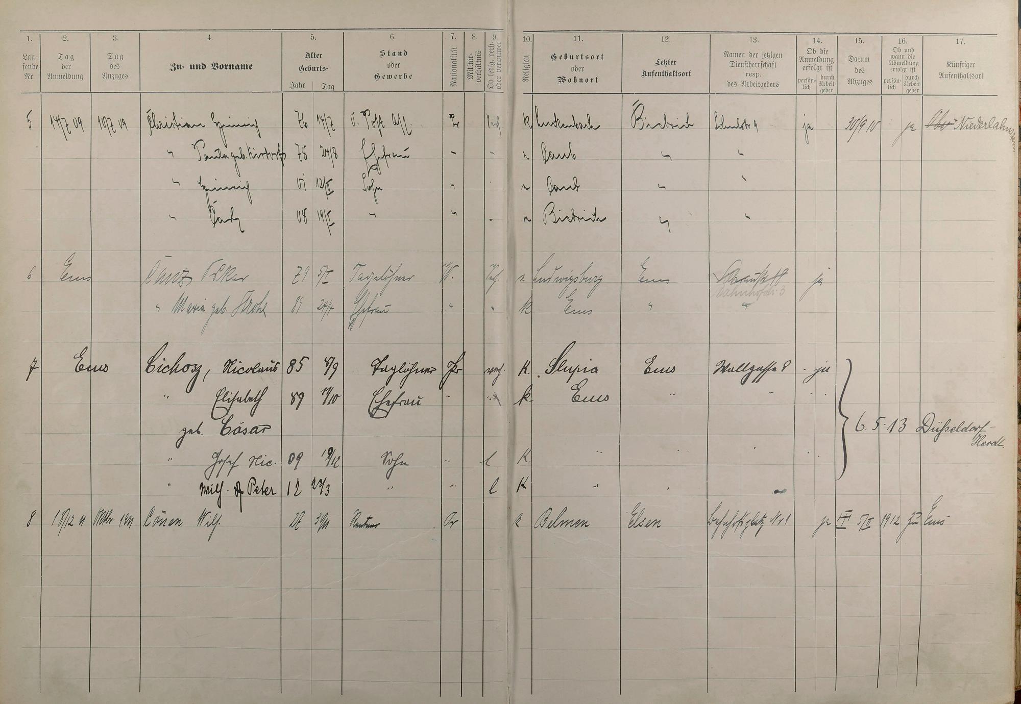 194: Melderegister 1909 - 1914