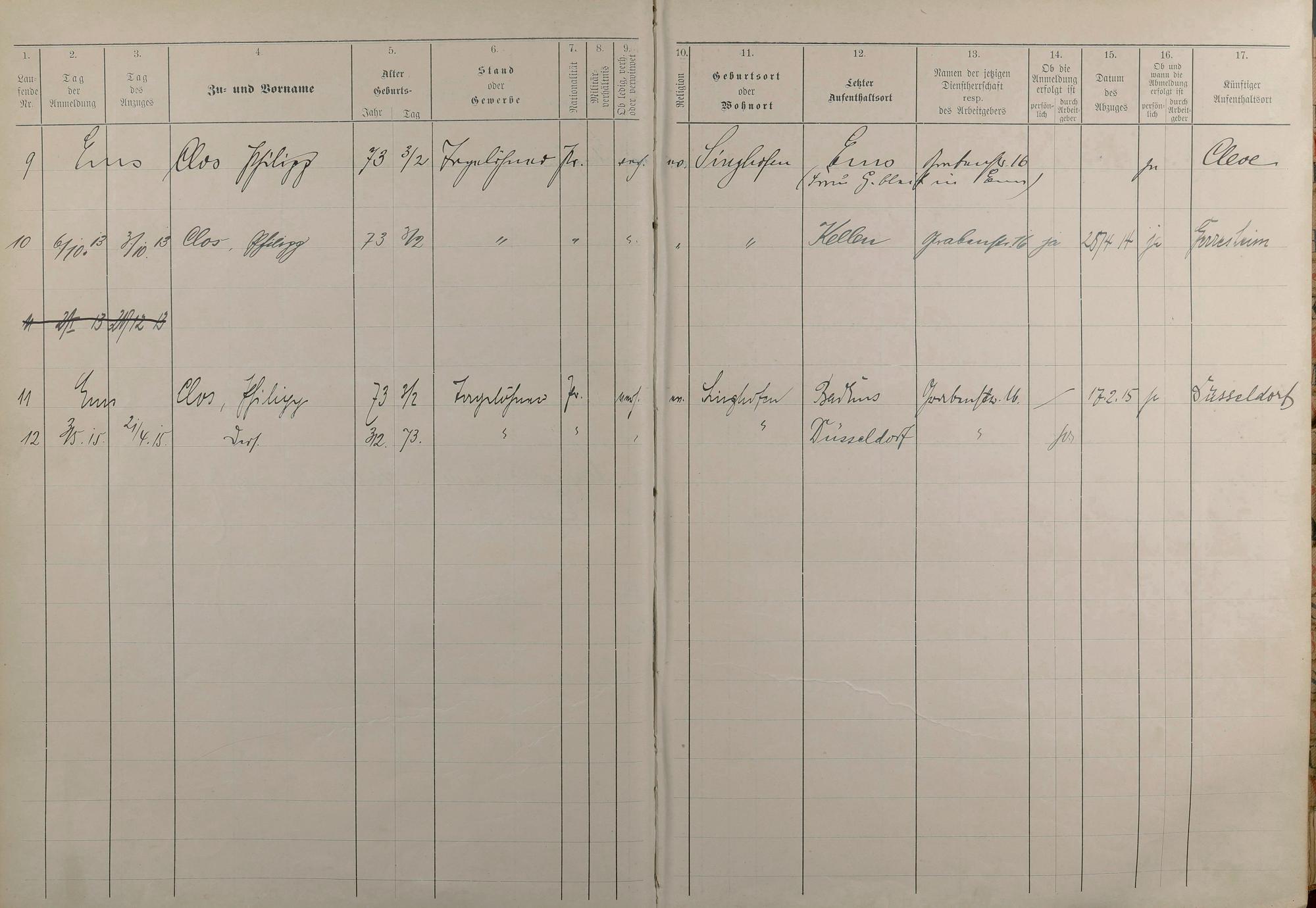 Melderegister 1909 - 1914