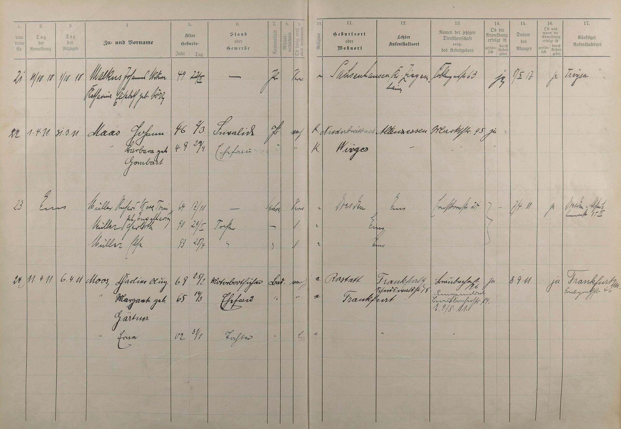 Melderegister 1909 - 1914