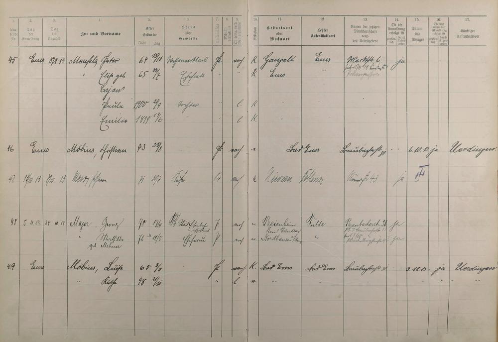 Melderegister 1909 - 1914