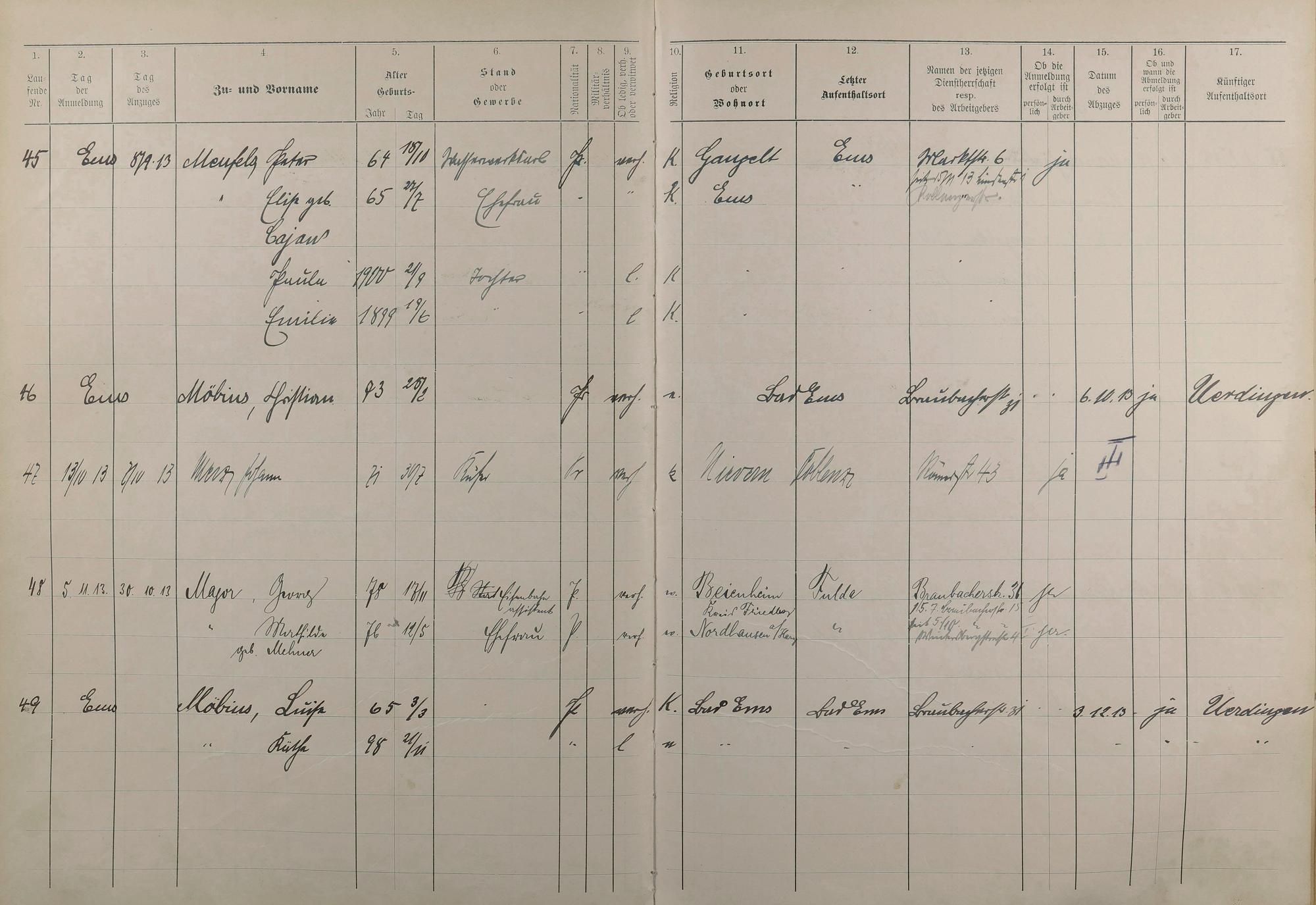 194: Melderegister 1909 - 1914