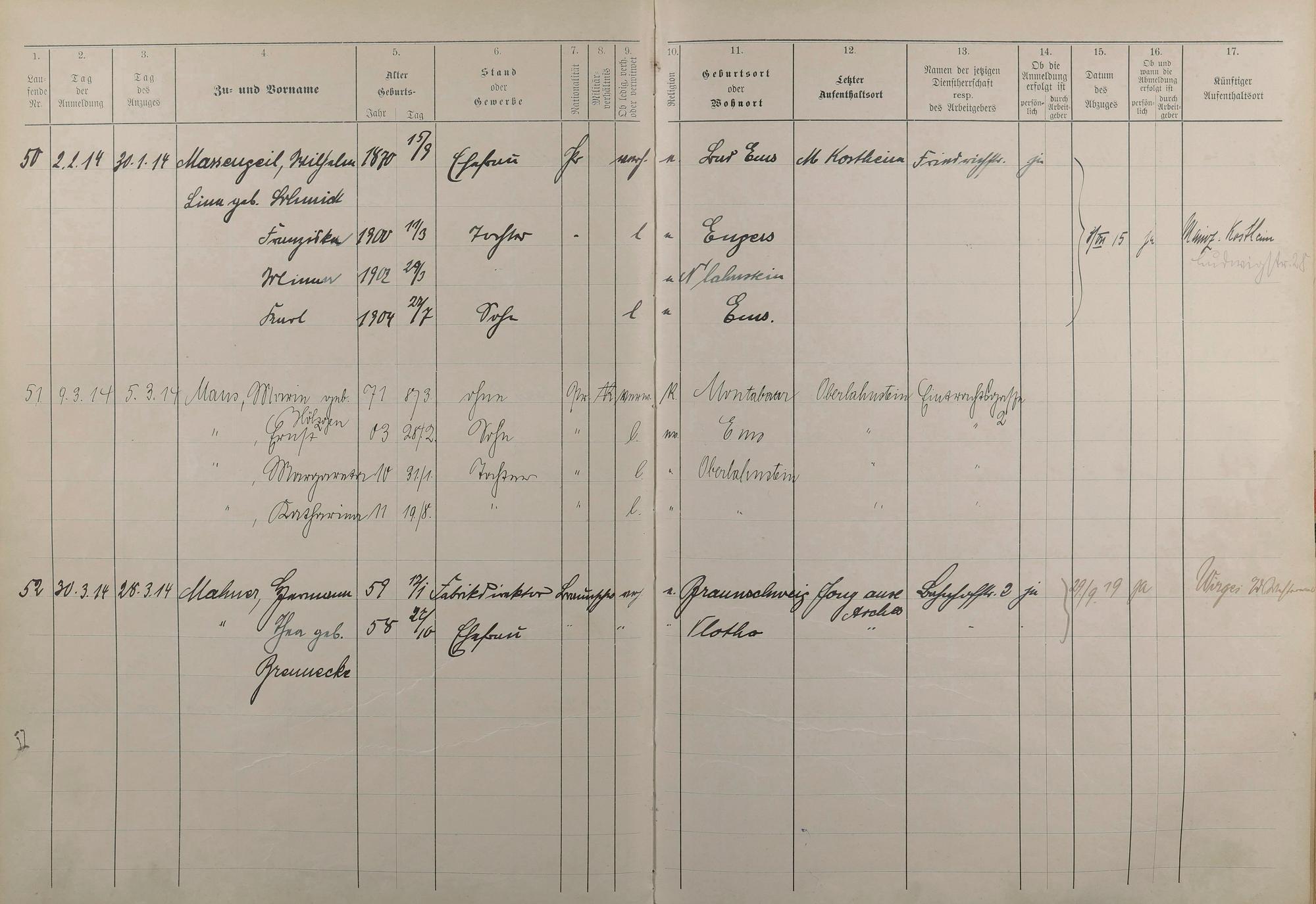 Melderegister 1909 - 1914