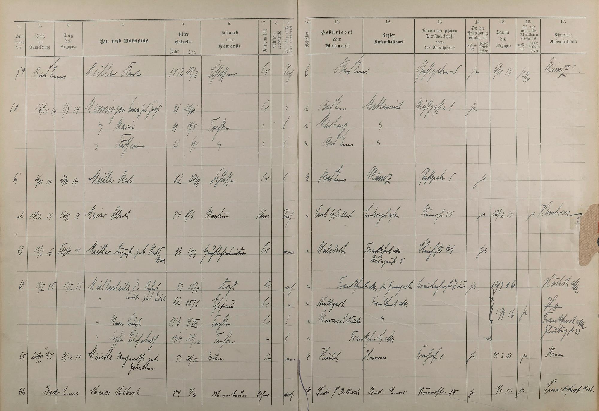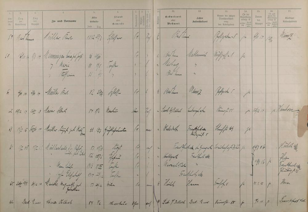 Melderegister 1909 - 1914