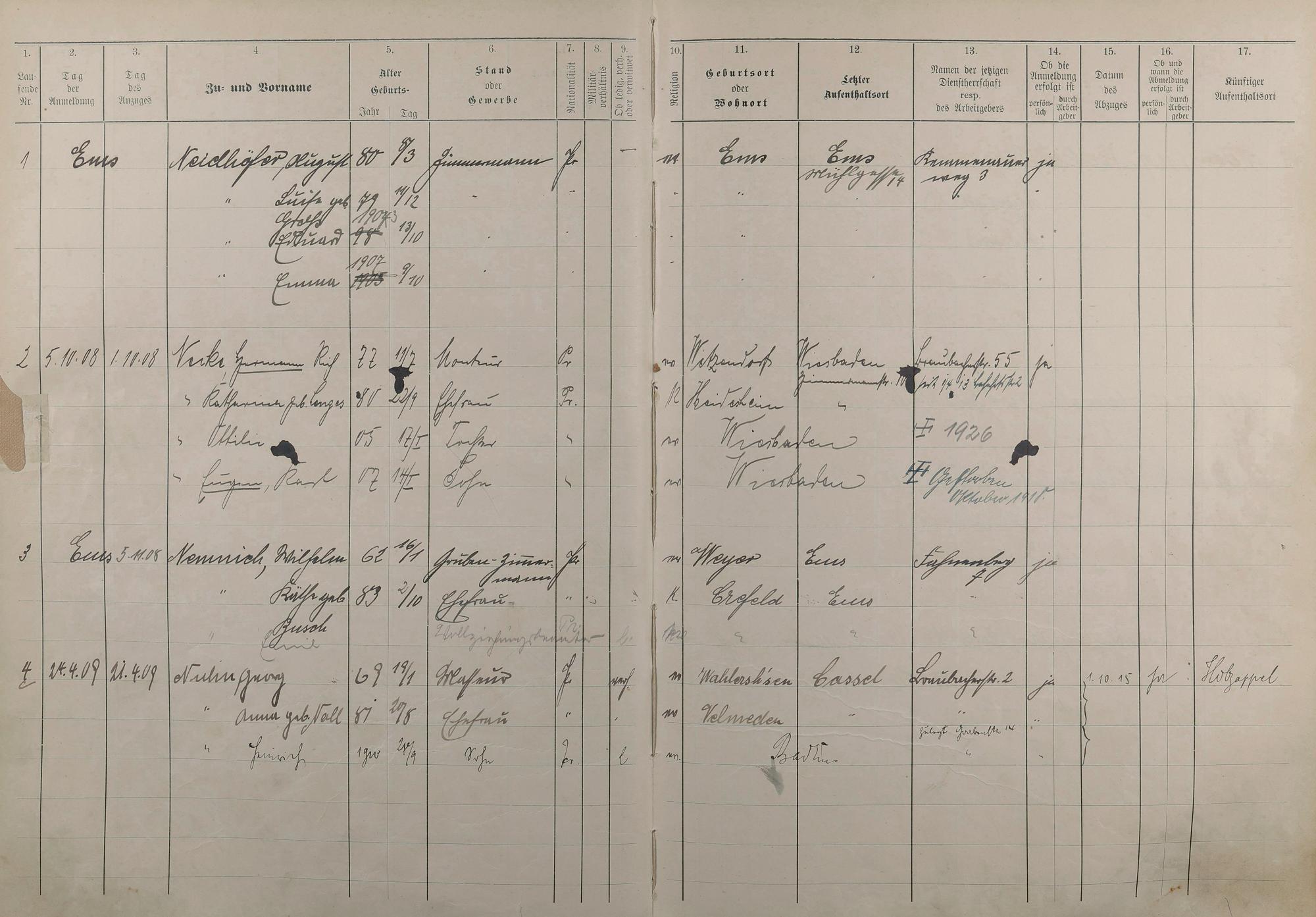 Melderegister 1909 - 1914