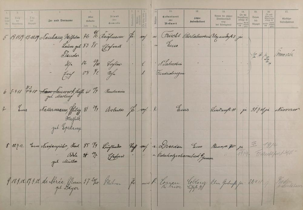 Melderegister 1909 - 1914