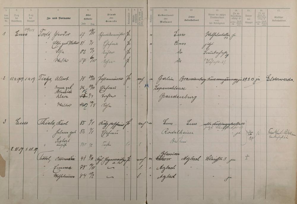 Melderegister 1909 - 1914
