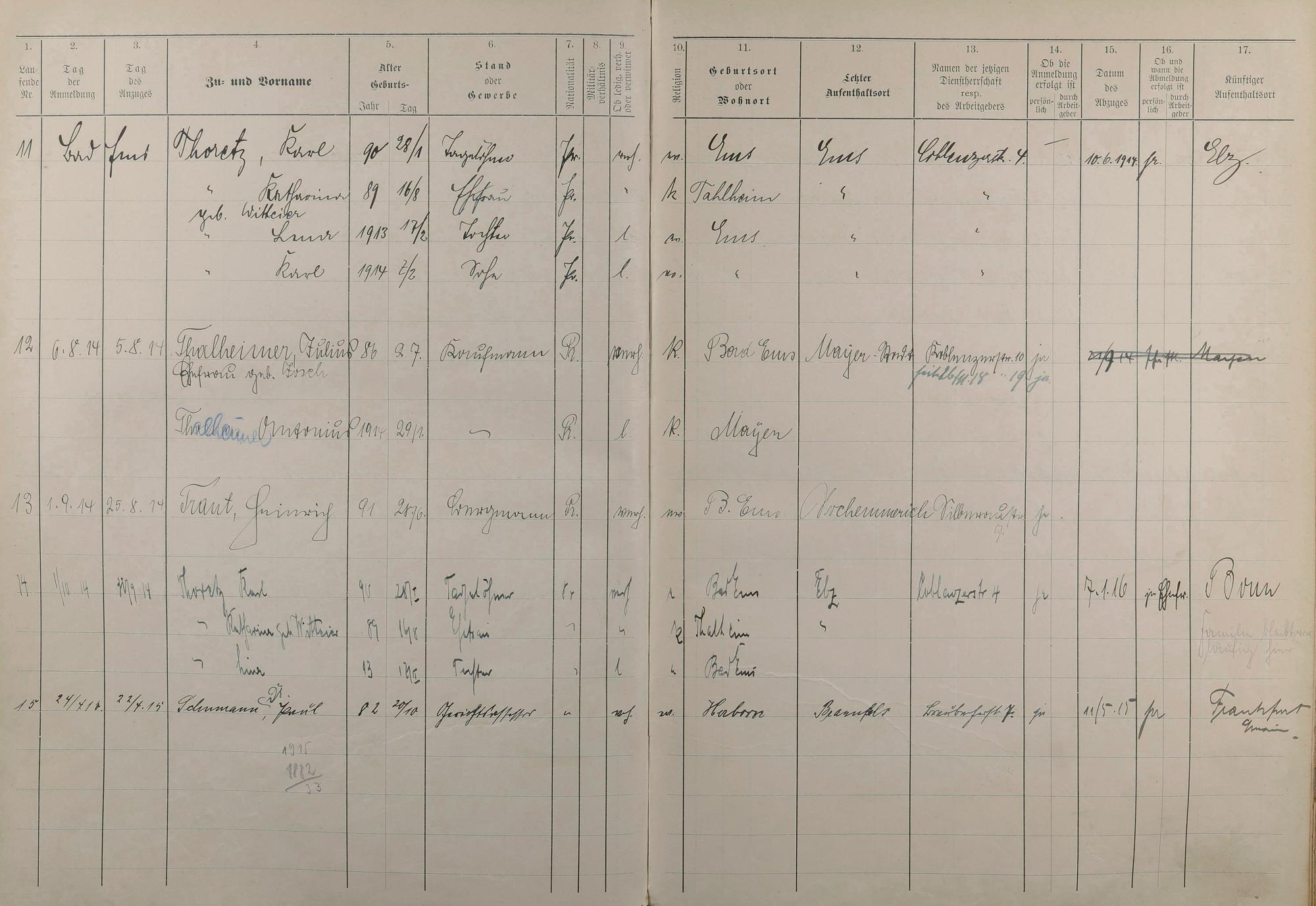 Melderegister 1909 - 1914