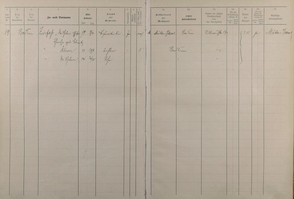 Melderegister 1909 - 1914