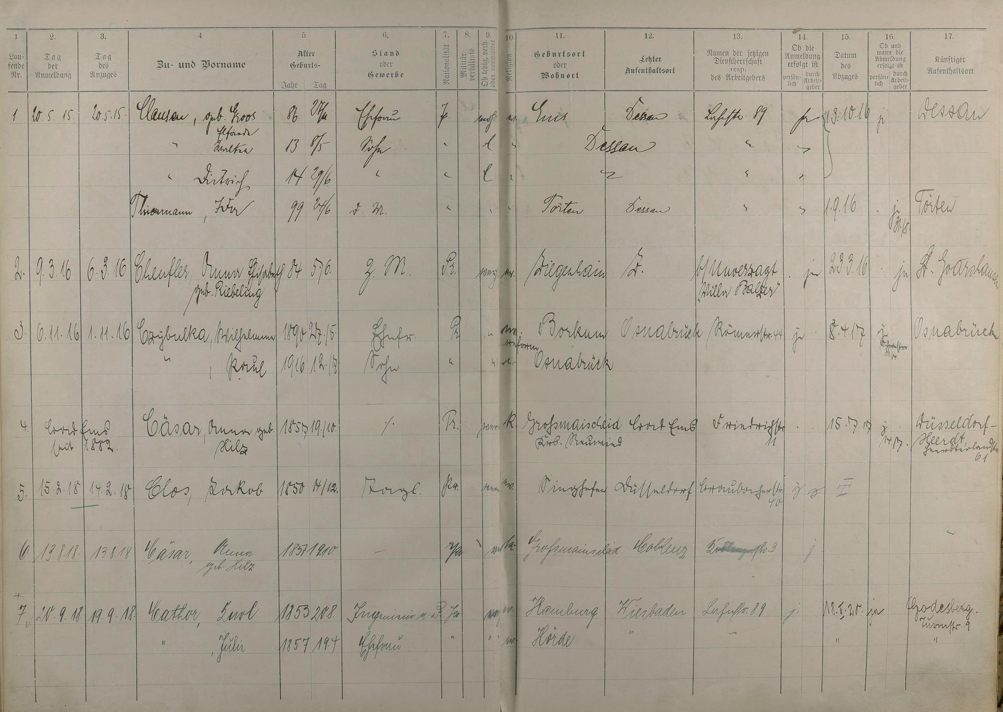 Melderegister 1915 - 1923