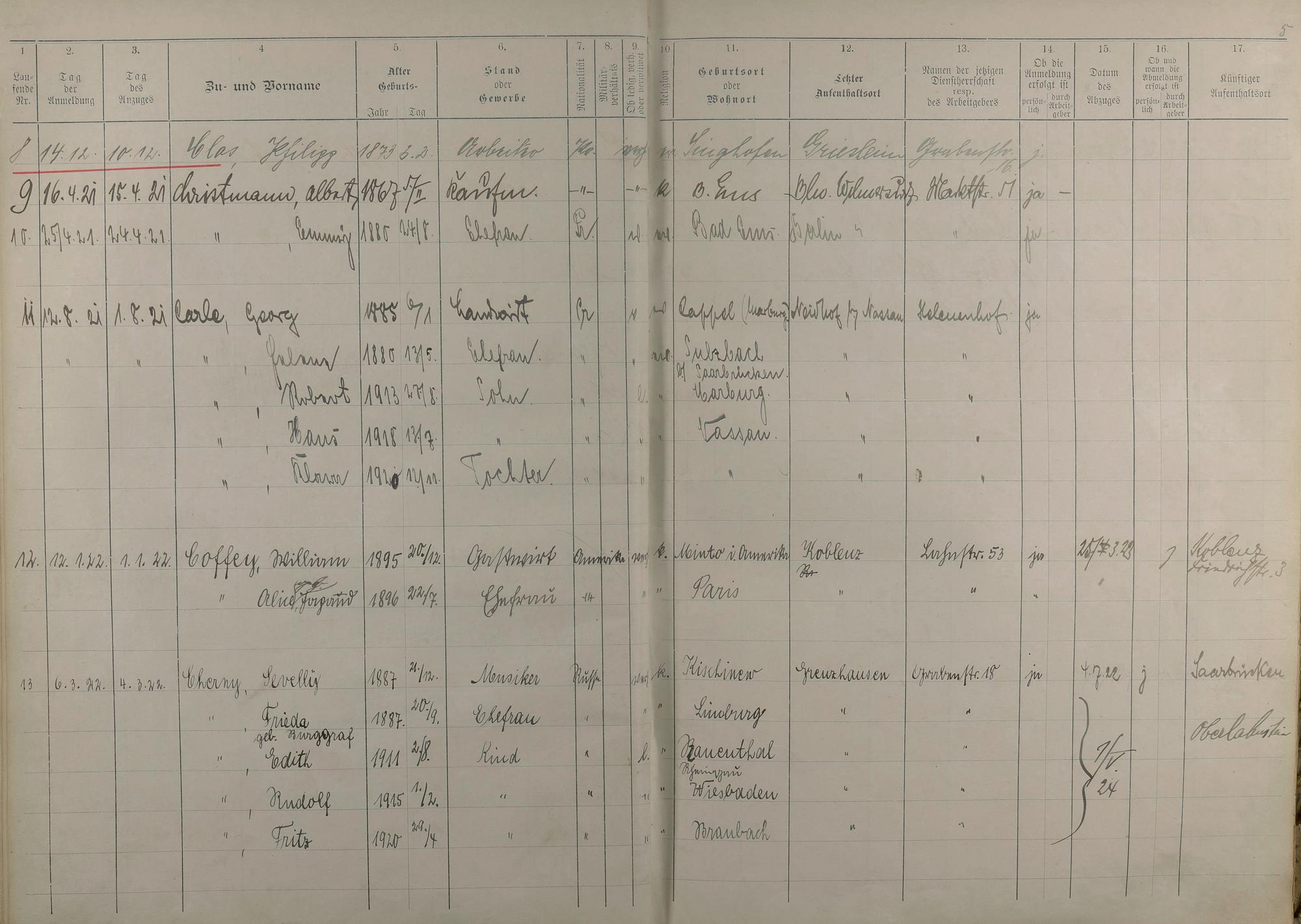 195: Melderegister 1915 - 1923