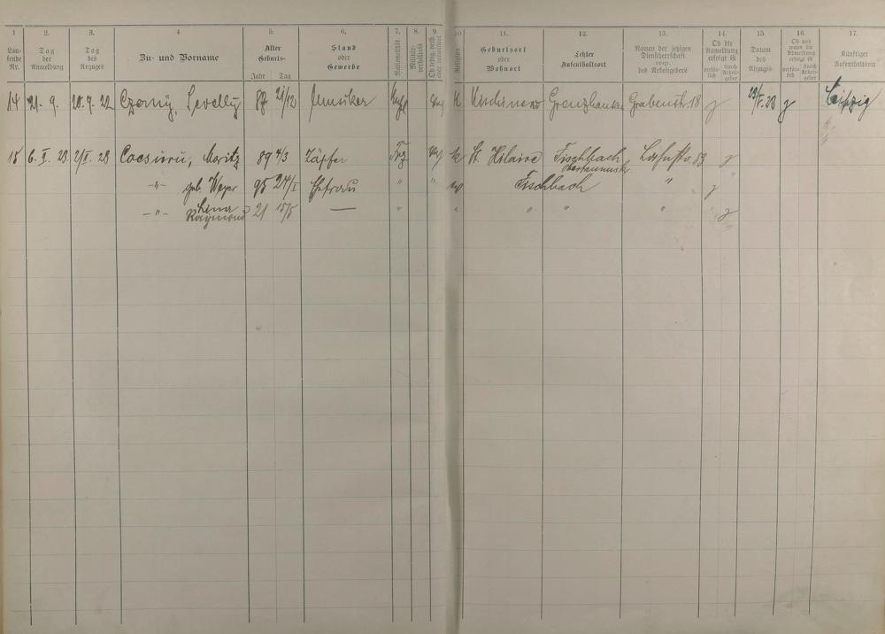 Melderegister 1915 - 1923