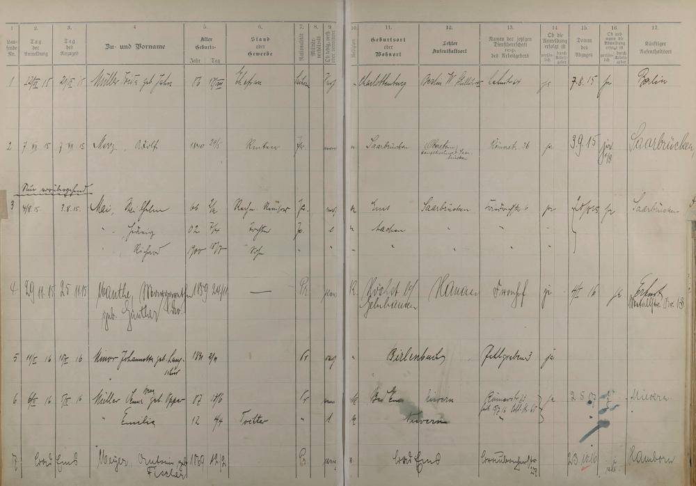 Melderegister 1915 - 1923