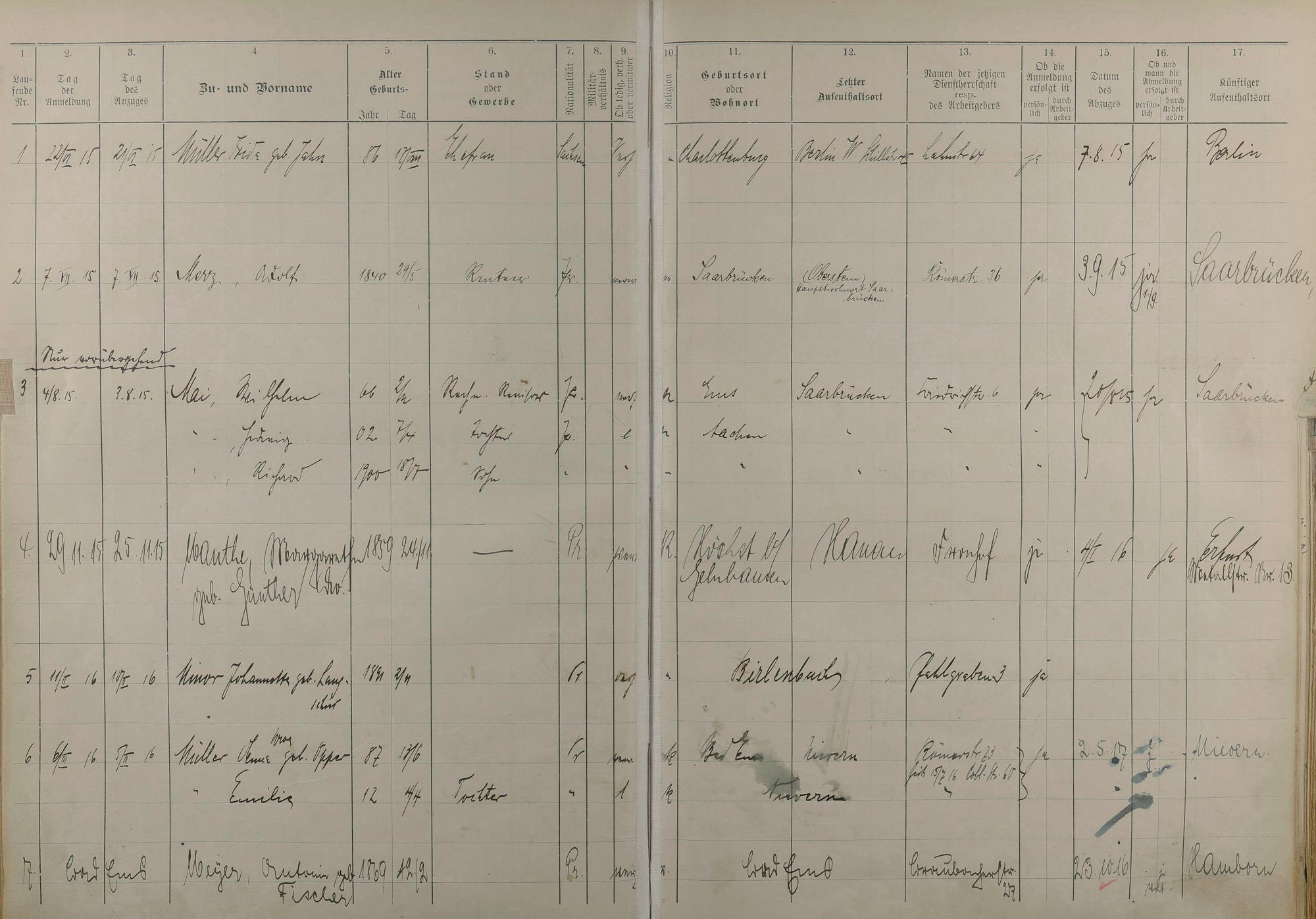195: Melderegister 1915 - 1923