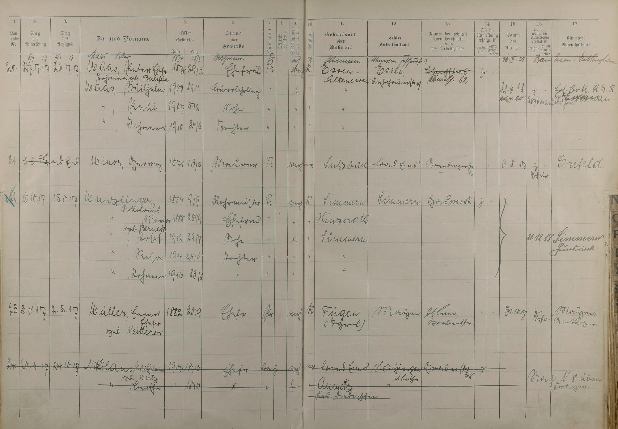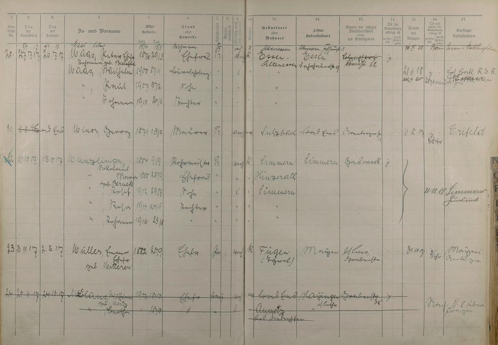 Melderegister 1915 - 1923